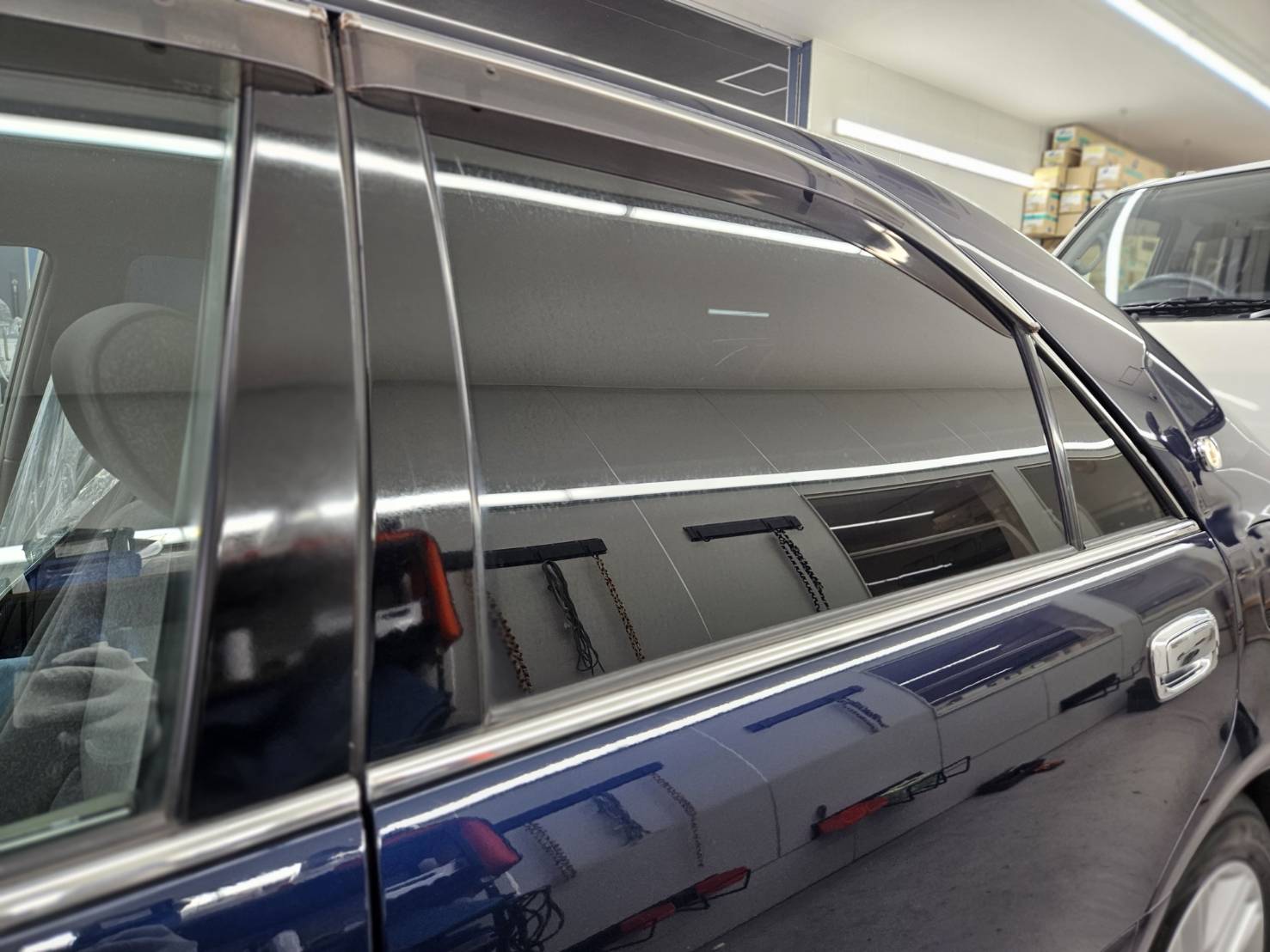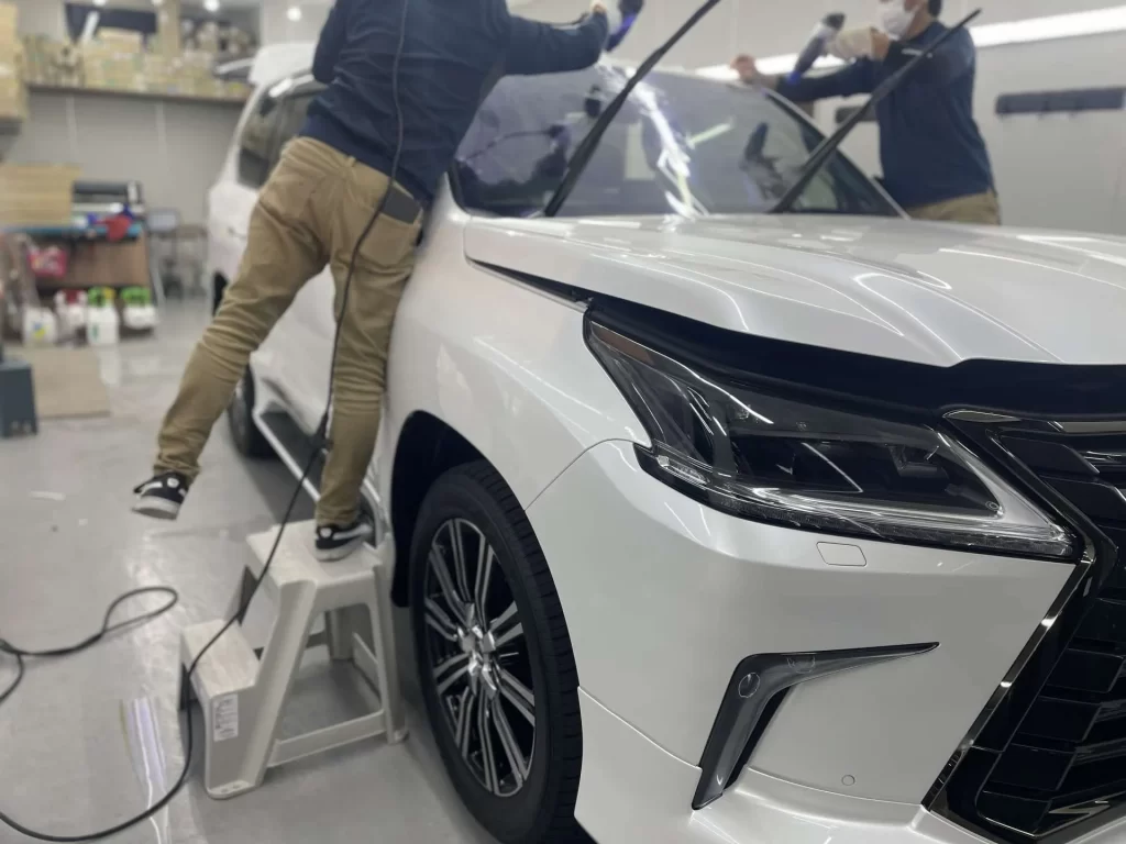 nexusでは、技術向上はもちろん、施工設備環境に力を入れてきました。フィルム施工を行う上で専用ブースを設け、ほこりが浮遊しにくい環境で施工を行っております。これは専門店としては当たり前のことでフロントフィルム施工の遮熱フィルム施工時はゴミかみが特に目立ち、専用ブースがあることによって、できる限り最小限に抑える事が可能です。