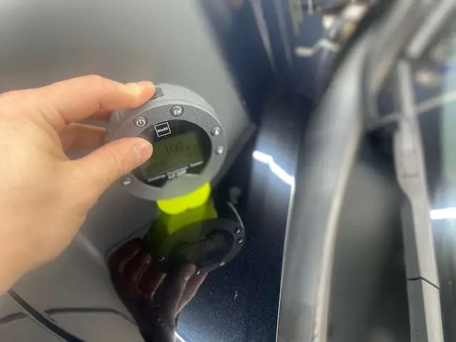 nexusではコーティングなどで研磨の前に塗膜計測を行ないます。 これにより磨ける目安、再塗装してあるかなどがわかります。 数値という形で塗装の状態を確認します。